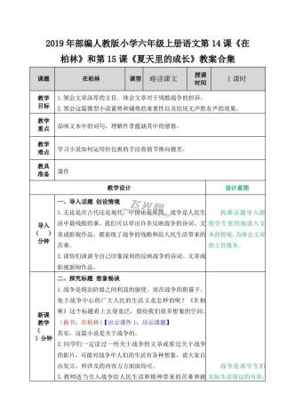 2019年部编人教版小学六年级上册语文第14课《在柏林》和第15课《夏天里的成长》教案合集