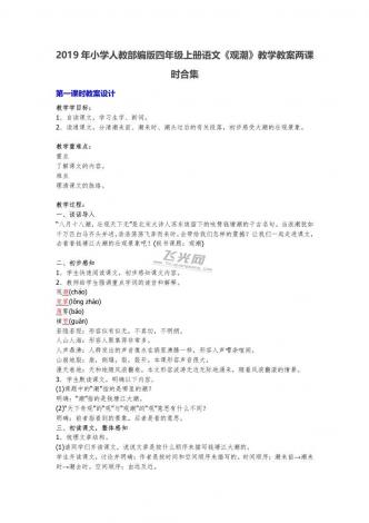 2019年小学人教部编版四年级上册语文《观潮》教学教案两课时合集