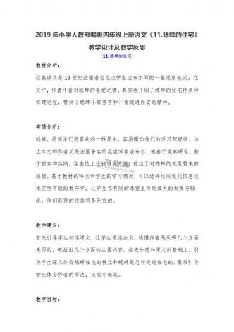 2019年小学人教部编版四年级上册语文《11.蟋蟀的住宅》教学设计及教学反思