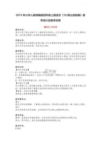 2019年小学人教部编版四年级上册语文《10.爬山虎的脚》教学设计及教学反思
