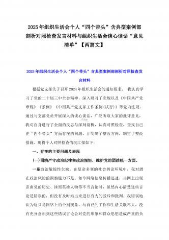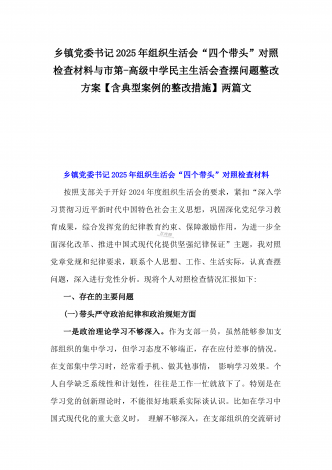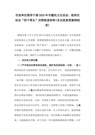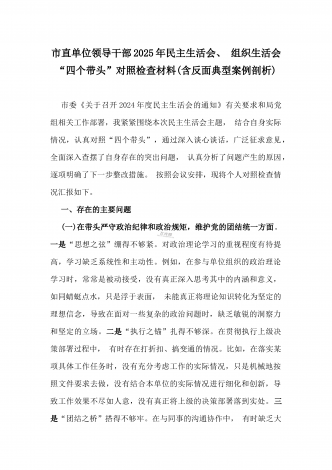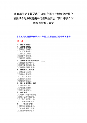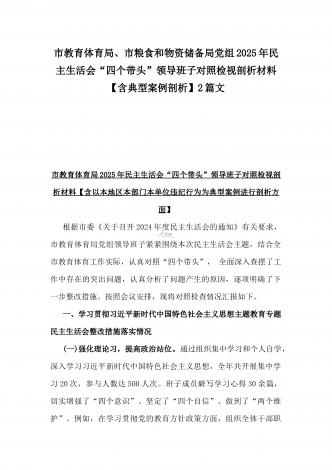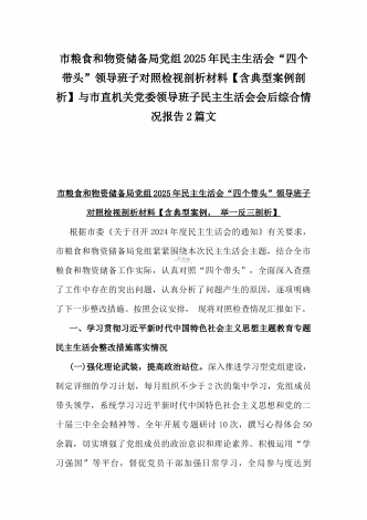 市粮食和物资储备局党组2025年民主生活会“四个带头”领导班子对照检视剖析材料【含典型案例剖析】与市直机关党委领导班子民主生活会会后综合情况报告2篇文