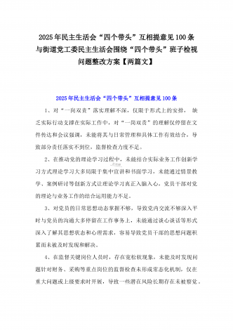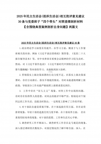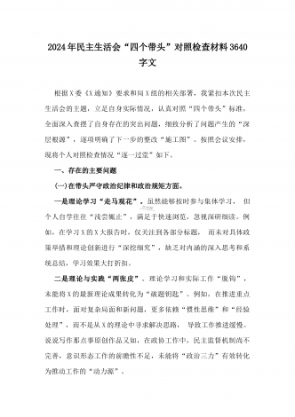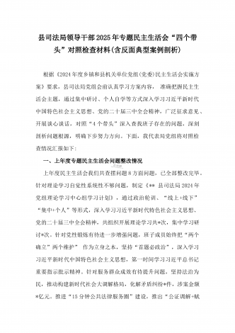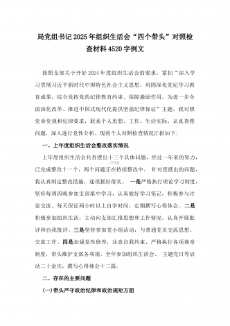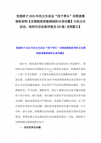 市粮食和物资储备局党组2025年民主生活会“四个带头”领导班子对照检视剖析材料【含典型案例剖析】与市直机关党委领导班子民主生活会会后综合情况报告2篇文市粮食和物资储备局党组2025年民主生活会“四个带头”领导班子对照检视剖析材料【含典型案例,举一反三剖析】根据市委《关于召开2024年度民主生活会的通知》有关要求,市粮食和物资储备局党组紧紧围绕本次民主生活会主题,结合全市粮食和物资储备工作实际,认真对照“四个带头”,全面深入查摆了工作中存在的突出问题,认真分析了问题产生的原因,逐项明确了下一步整改...