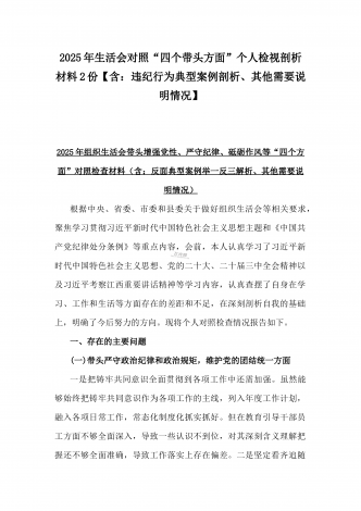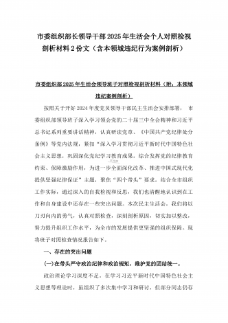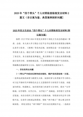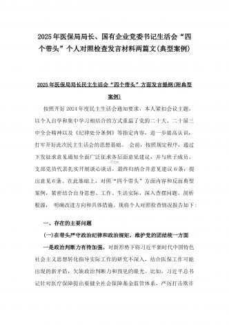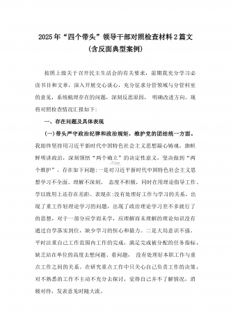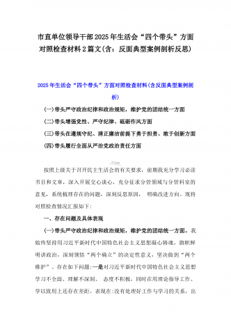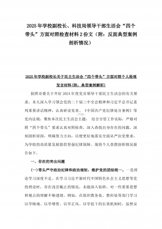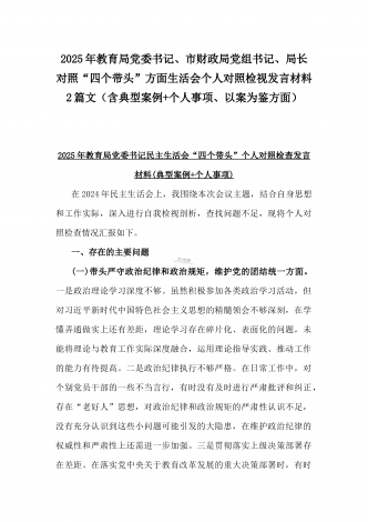 2025年教育局党委书记、市财政局党组书记、局长对照“四个带头”方面生活会个人对照检视发言材料2篇文(含典型案例+个人事项、以案为鉴方面)