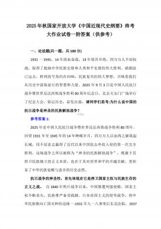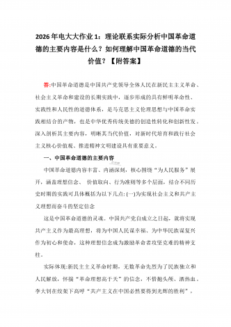 2026年电大大作业1:理论联系实际分析中国革命道德的主要内容是什么?如何理解中国革命道德的当代价值?【附答案】