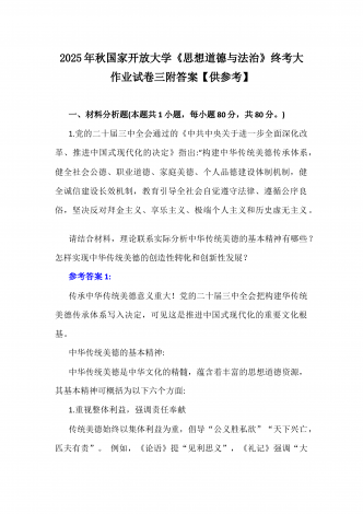 2026年电大大作业1:理论联系实际分析中国革命道德的主要内容是什么?如何理解中国革命道德的当代价值?【附答案】答:中国革命道德是中国共产党领导全体人民在新民主主义革命、社会主义革命和建设的长期实践中,逐步形成的具有鲜明革命性、实践性和人民性的道德体系,是马克思主义伦理思想与中国革命实践相结合的产物,也是中华优秀传统美德的创造性转化和创新性发。深入剖析其主要内容,明晰其当代价值,对新时代培育和践行社会主义核心价值观、推进精神文明建设具有重要意义。一、中国革命道德的主要内容中国革命道德内容丰富、内...
