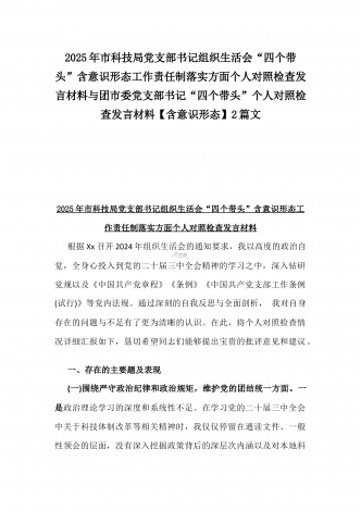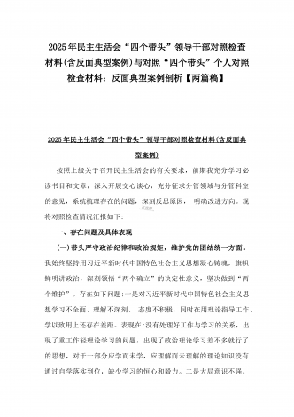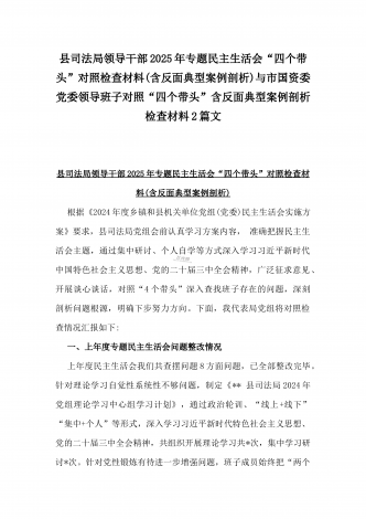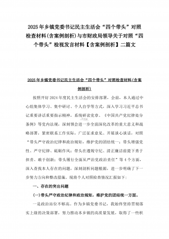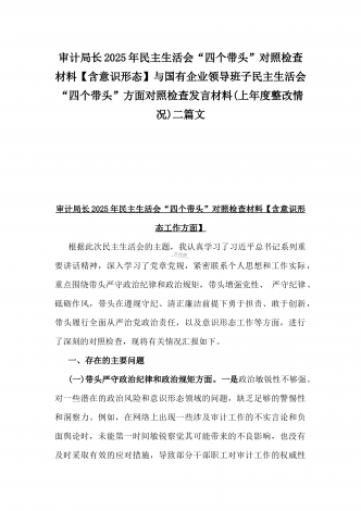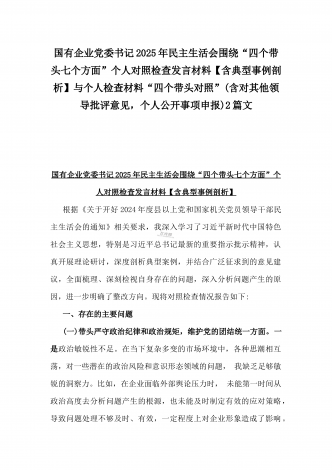 国有企业党委书记2025年民主生活会围绕“四个带头七个方面”个人对照检查发言材料【含典型事例剖析】与个人检查材料“四个带头对照”(含对其他领导批评意见,个人公开事项申报)2篇文