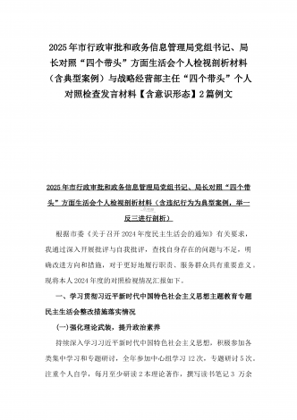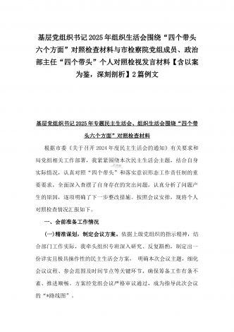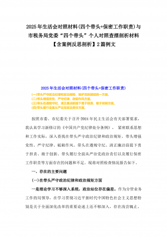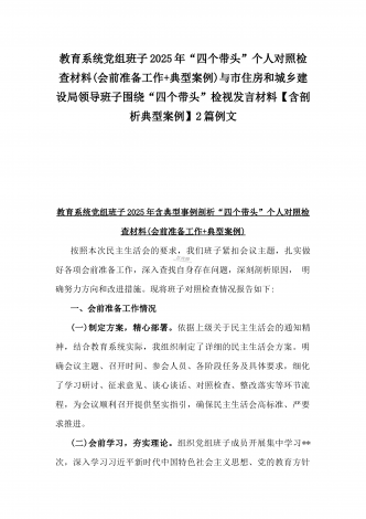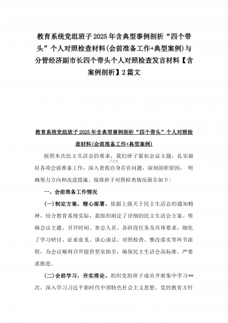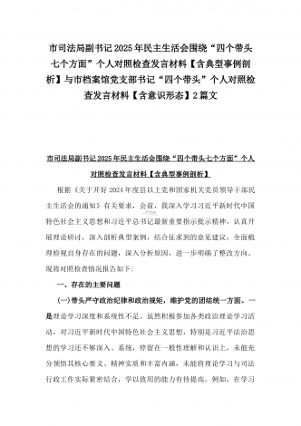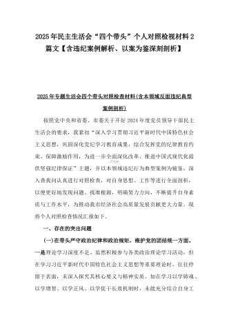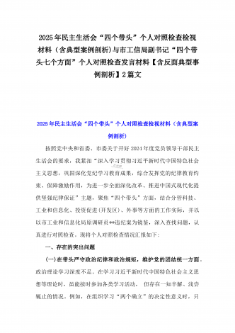 国有企业党委书记2025年民主生活会围绕“四个带头七个方面”个人对照检查发言材料【含典型事例剖析】与个人检查材料“四个带头对照”(含对其他领导批评意见,个人公开事项申报)2篇文国有企业党委书记2025年民主生活会围绕“四个带头七个方面”个人对照检查发言材料【含典型事例剖析】根据《关于开好2024年度县以上党和国家机关党员领导干部民主生活会的通知》相关要求,我深入学习了习近平新时代中国特色社会主义思想,特别是习近平总书记最新的重要指示批示精神,认真开展理论研讨,深度剖析典型案例,并结合广泛征求到的...