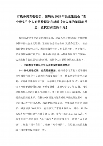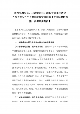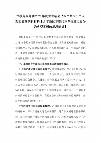 市教育体育局2025年民主生活会“四个带头”领导班子对照检视剖析材料【含以本地区本部门本单位违纪行为为典型案例进行剖析方面】