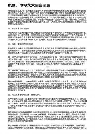 电影、电视艺术同宗同源