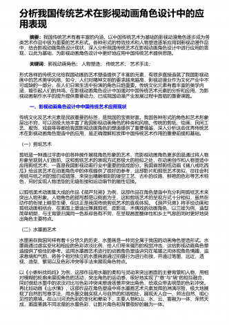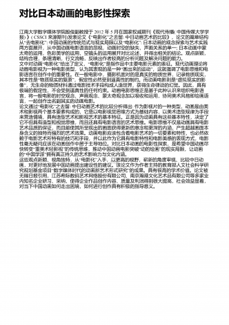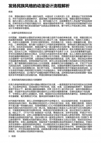 动画创作中如何创新民族文化元素摘 要: 如今的中国动画创作, 盲目学习借鉴欧美及日本的动画, 丧失了创作的灵性, 使得作“”品有形无魂。与国外知名动画相比, 国产动画片在背景构建、剧本编写以及动画形象、动作的流畅性、故事的情感性等各方面都有待提高。因而发展民族文化题材的动画片是我国动画产业的必行之路。一部优异的动画作品, 它的创作及制造会受到民族、时代以及社会的影响。当我们在电影院吃着爆米花、喝着可乐、看着动画电影《功夫熊猫》的时候, 会不会不由得感叹, 这样强烈的中国风电影为何不是出自我们国...