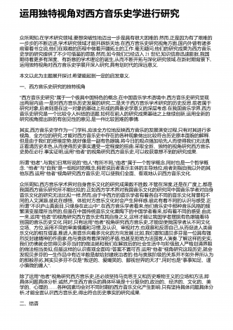 运用独特视角对西方音乐史学进行研究