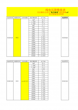 电流类型线缆类型功率因数线芯截面积mV/A*m电流类型直流电流单芯44.2直流电流29.717.811.17.414.472.821.781.280.9470.6550.4720.3730.3040.2430.1850.1470.1150.01920.0707电流类型线缆类型功率因数线芯截面积mV/A*m电流类型单相交流单芯cosφ=0.835.6单相交流23.914.49.086.13.722.391.551.150.8780.6410.4940.4130.3560.3060.2590.229...