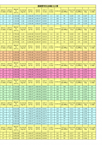 圆钢管受压承载力计算322.52.32E-041.822.54E-083.97E-070.01051.5143990.2202350.367183232.73E-042.152.90E-084.54E-070.01031.5146960.2242350.35821323.53.13E-042.463.23E-085.05E-070.01021.5148930.2272350.348233243.52E-042.763.52E-085.50E-070.01001.5150900.2312350.3...