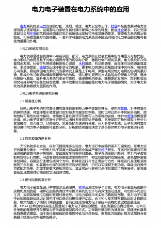 电力电子装置在电力系统中的应用 电力系统负责电力资源的分配、规划、输送、电力安全等工作,社会科技的发展对电力资源的需求逐渐增加,这需要电力系统在新时期不断做出科学的调整,配合社会需求。石油资源紧缺与自然环境的危机促使国家对电力系统提出坚持可持续发展的要求,需要电力系统做出智能化、可持续发展方向的调整。一套科学可靠的电力系统改革措施对现代电力事业的发展有着极为重要的作用。 1 电力系统发展状态 电力资源是社会资源中不可或缺的一部分,电力系统在社会发展中的作用是无可替代的。电力系统的出现是基于...