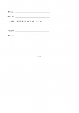 工况介绍:(如在使用中有无冲击负载,或外力等)__________________________________________使用设备:___________________________________________使用位置:___________________________________________希望寿命:__________________________________________润滑方式:_____________________________________...