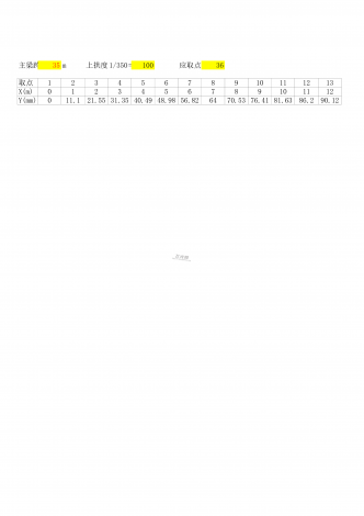 35m上拱度100应取点36取点12345678910111213X(m)0123456789101112Y(mm)011.121.5531.3540.4948.9856.826470.5376.4181.6386.290.12主梁跨度1/350=14151617181920212223242513141516171819202122232493.399697.9699.2799.9299.9299.2797.969693.38890.1224586.2040826272829303132333...