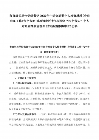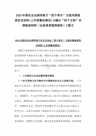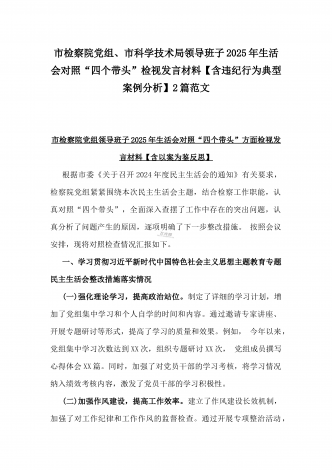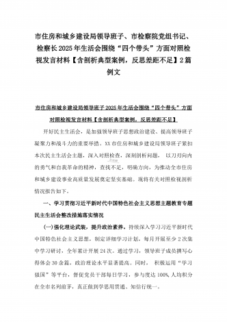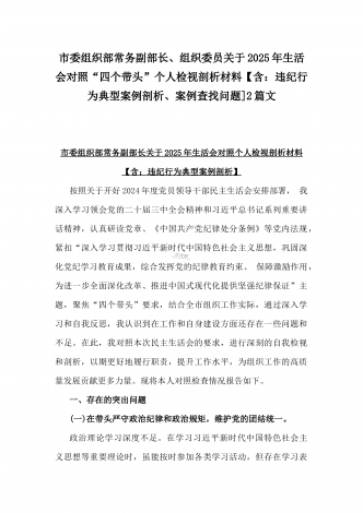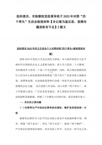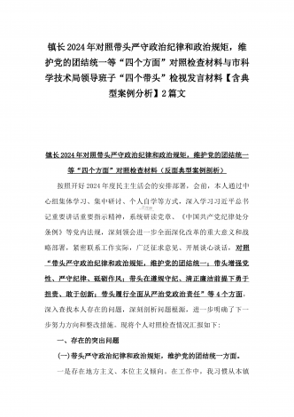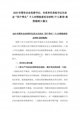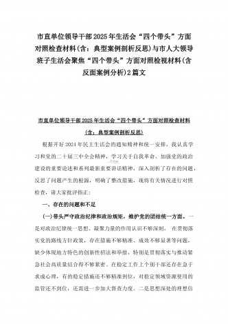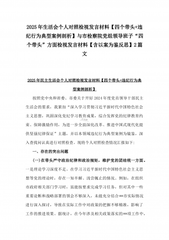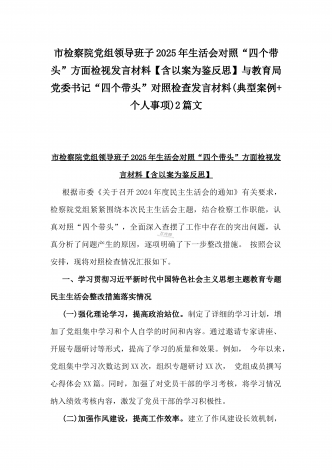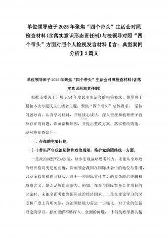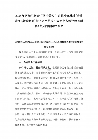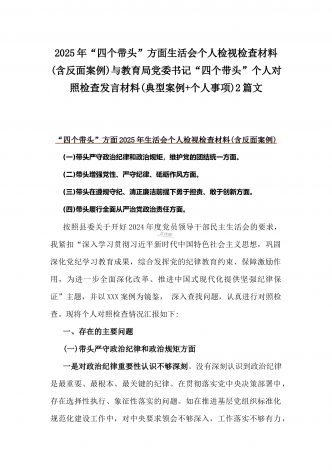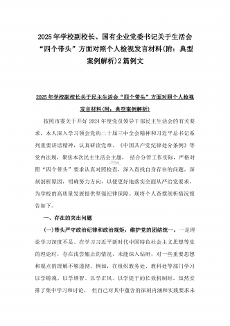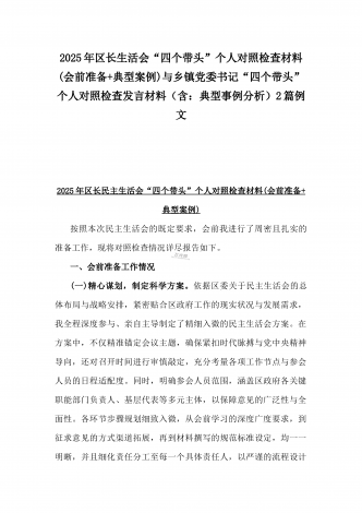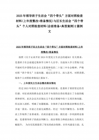 校领导2025年生活会对照“四个带头”方面对照个人检视发言材料【含:围绕本领城违纪行为典型案例分析方面】与区长“四个带头”个人对照检查材料(会前准备+典型案例)2篇例文