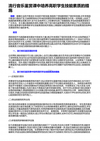 流行音乐鉴赏课中培养高职学生技能素质的措施