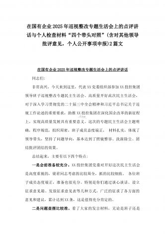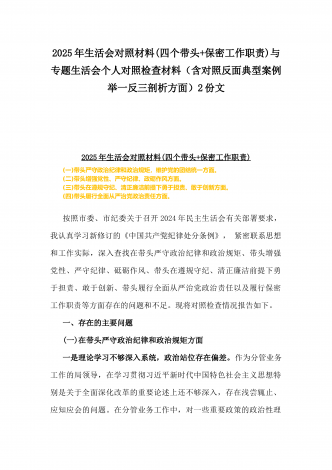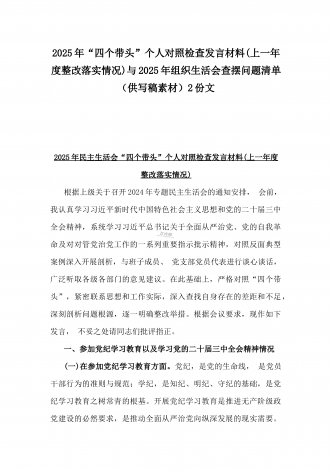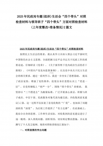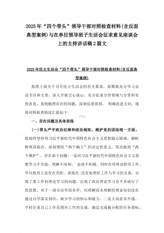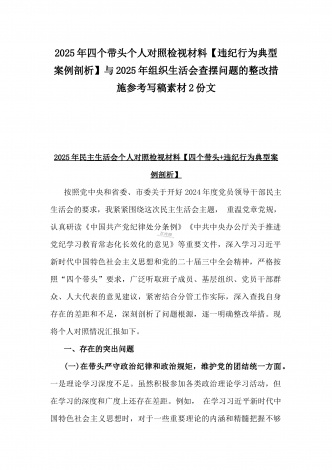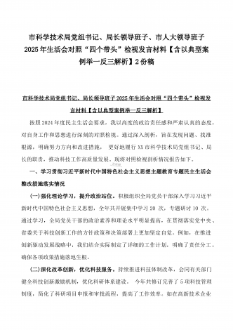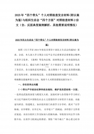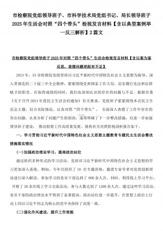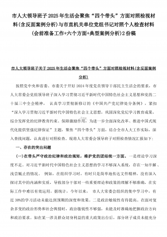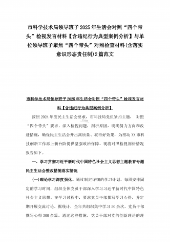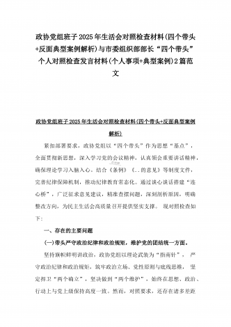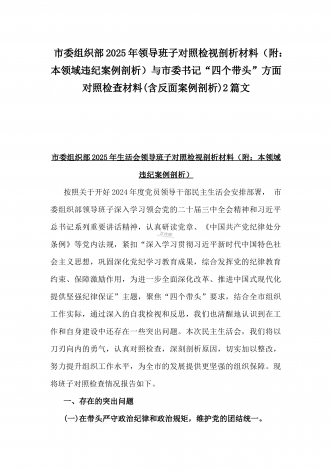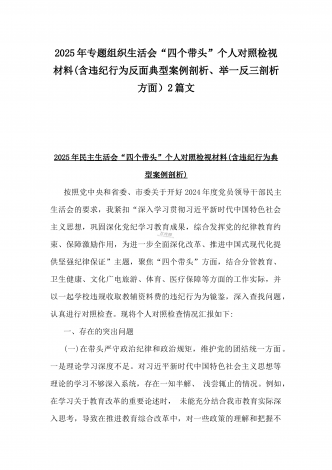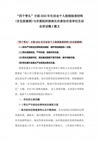 校领导2025年生活会对照“四个带头”方面对照个人检视发言材料【含:违纪行为典型案例分析】与市直单位领导干部“四个带头”方面对照检查材料(含:典型案例剖析反思)2篇范文