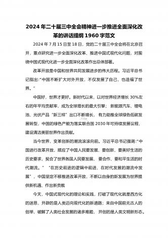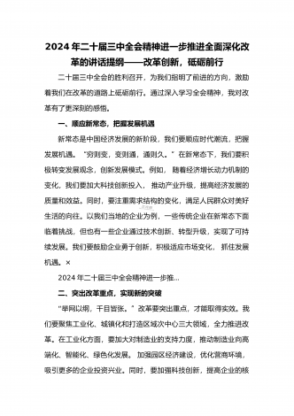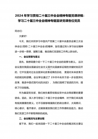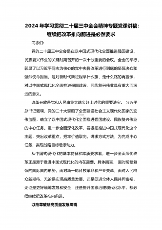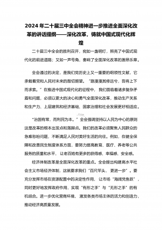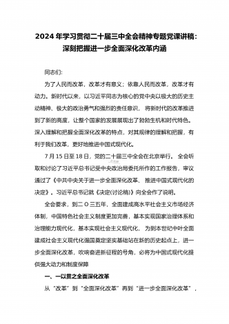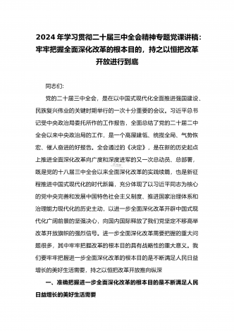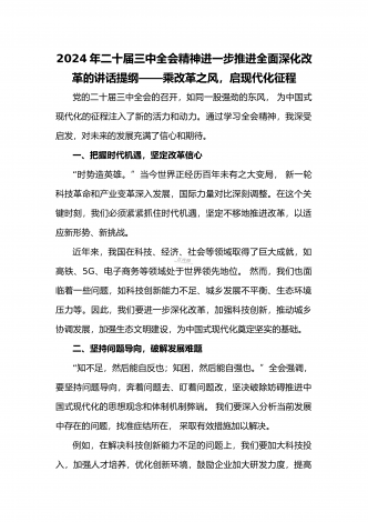 2024年庆祝20届三中全会召开中心组学习材料与学习宣传贯彻2024年20届三中全会精神工作方案(两篇文)供参考2024年庆祝二十届三中全会召开中心组学习材料2024年7月15日至18日,党的二十届三中全会将在北京召开,重点研究进一步全面深化改革、推进中国式现代化问题,对围绕中国式现代化进一步全面深化改革作出总体部署。江河奔流,不舍昼夜。改革开放事业浩浩荡荡,书写着当代世界的中国奇迹。我们取得的成就如此厚实,能否成为停步休想的“靠垫”、安睡的“枕头”?习近平总书记的论断振聋发聩:“改革开放只有进...
