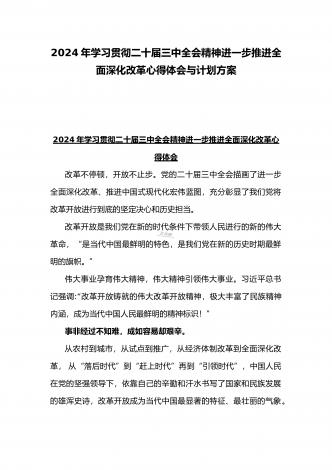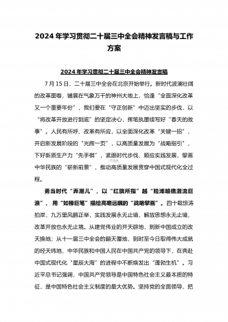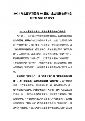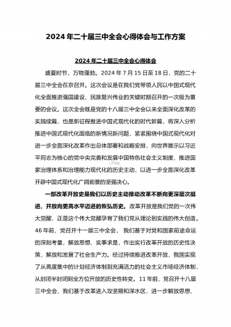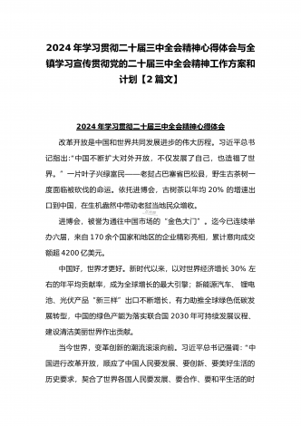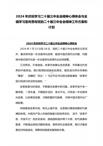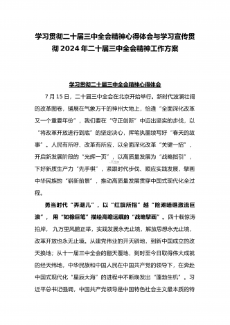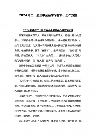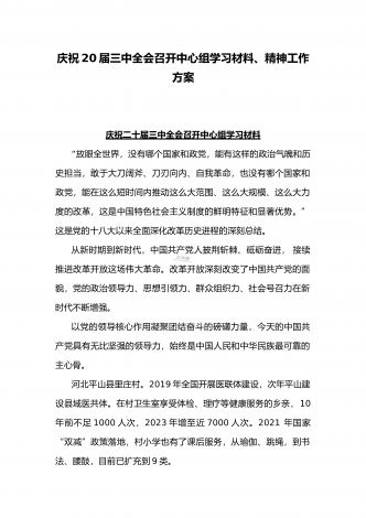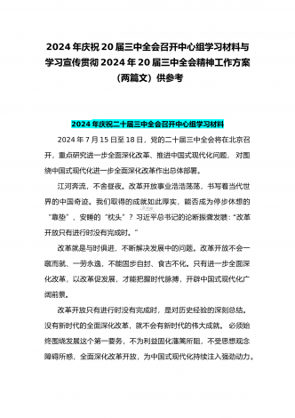 2024年庆祝20届三中全会召开中心组学习材料与学习宣传贯彻2024年20届三中全会精神工作方案(两篇文)供参考