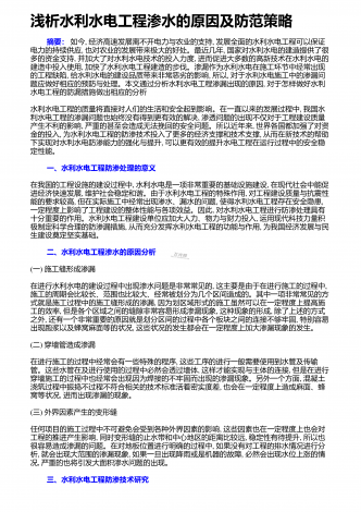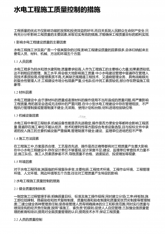 浅谈水利水电工程监理现状 水利水电工程师论文(期刊杂志范文8篇)之第四篇 摘要:工程项目的建造施工的过程中,工程施工的管理工作是非常关键和重要的,目前众多监理单位的建立,提高了建筑工程项目的建造施工的管理效力,也推进了建筑施工监理单位的内部竞争制度的建立,保障了监理工作的高质量和高水平。为了有效的提高建筑工程项目的建造施工的质量,施工监理制度正在工程监管实践过程中,逐渐的完善、革新,当然,由于起步较晚,我国目前的工程项目建设施工的监理工作还有很多需要进一步改进的地方,还需要广大建立工作者的积...