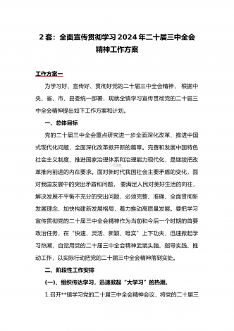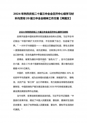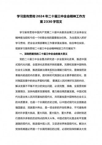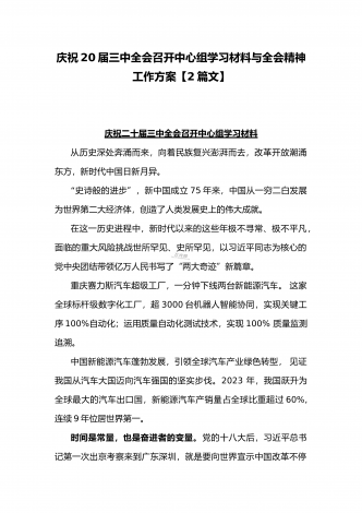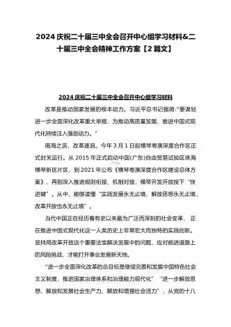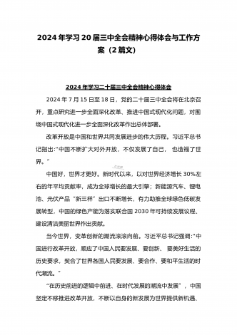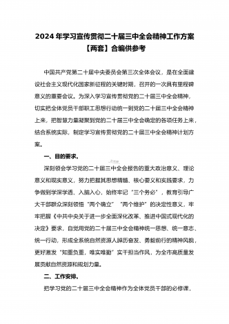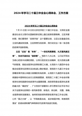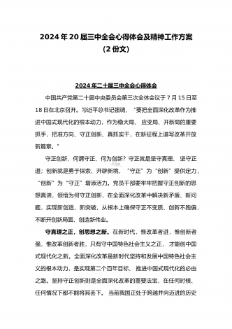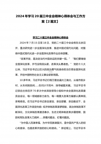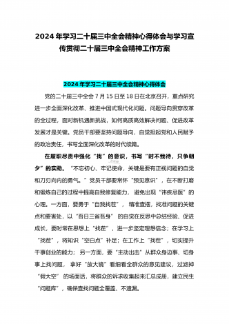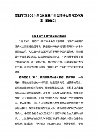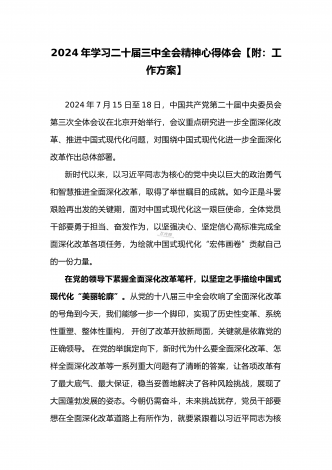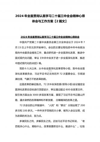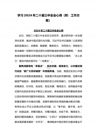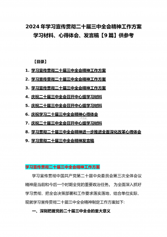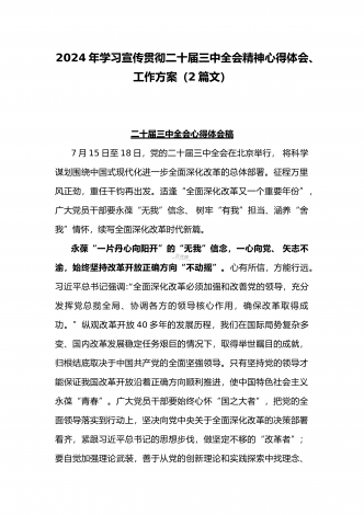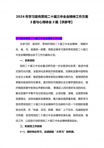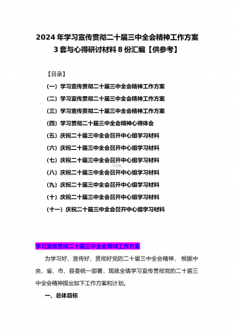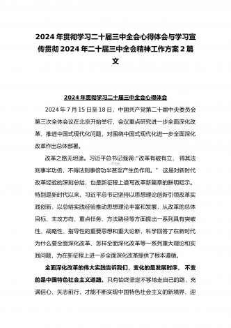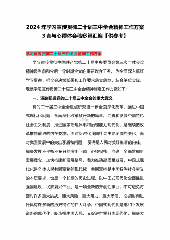 2024年学习宣传贯彻二十届三中全会精神工作方案3套与二十届三中全会精神学习材料、心得体会4篇【供参考】