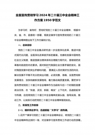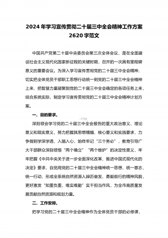 2024年学习宣传贯彻二十届三中全会精神工作方案3套与二十届三中全会精神学习材料、心得体会4篇【供参考】【目录】一、学习宣传贯彻二十届三中全会精神工作方案二、学习宣传贯彻二十届三中全会精神工作方案三、学习宣传贯彻二十届三中全会精神工作方案四、2024年庆祝二十届三中全会召开中心组学习材料1580字文五、庆祝二十届三中全会召开中心组学习材料1590字范文六、2024年二十届三中全会心得1280字稿七、学习二十届三中全会精神心得体会1750字稿学习宣传贯彻二十届三中全会精神工作方案中国共产党第二十届...