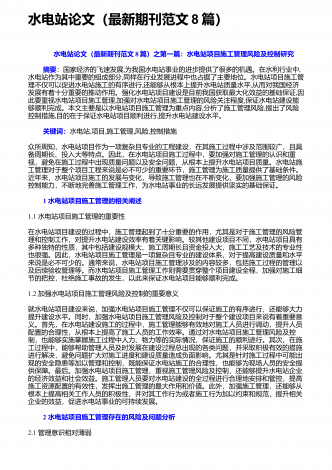 水电站论文(热门范文6篇)
