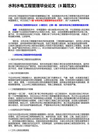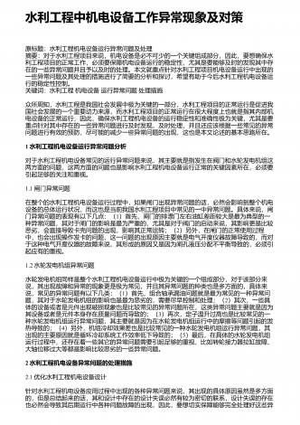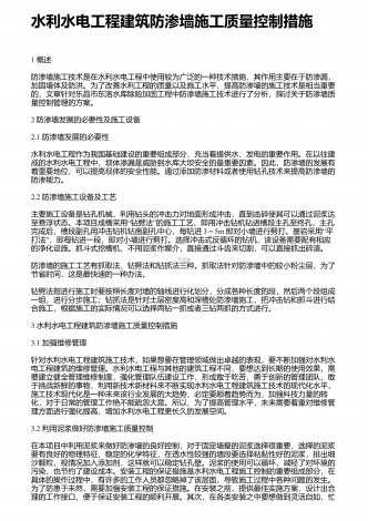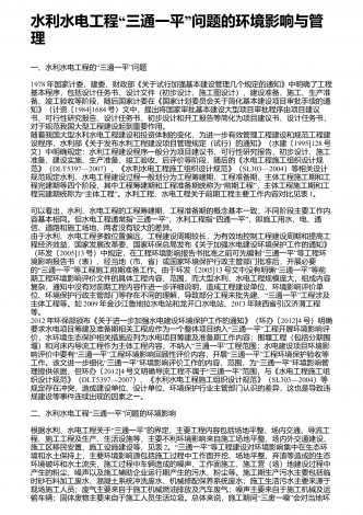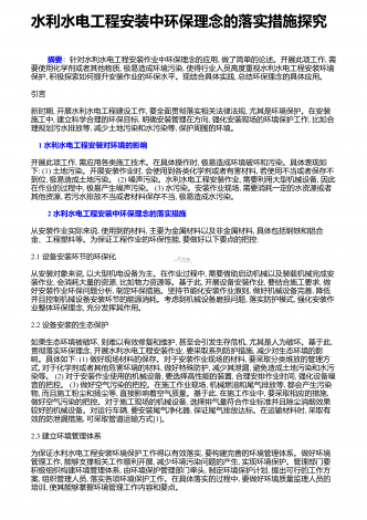 水利水电工程安装中环保理念的落实措施探究 摘要:针对水利水电工程安装作业中环保理念的应用,做了简单的论述。开展此项工作,需要使用化学剂或者其他物质,极易造成环境污染,使得行业人员高度重视水利水电工程安装环境保护,积极探索如何提升安装作业的环保水平。现结合具体实践,总结环保理念的具体应用。引言新时期,开展水利水电工程建设工作,要全面贯彻落实相关法律法规,尤其是环境保护。在安装施工中,建立科学合理的环保目标,明确安装管理在方向,强化安装现场的环境保护工作,比如合理规划污水排放等,减少土地污染和水污...