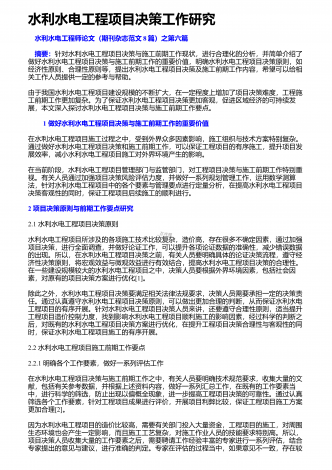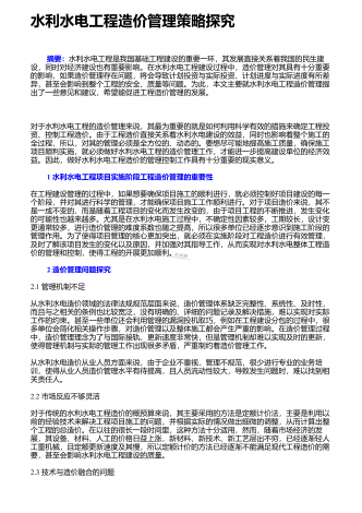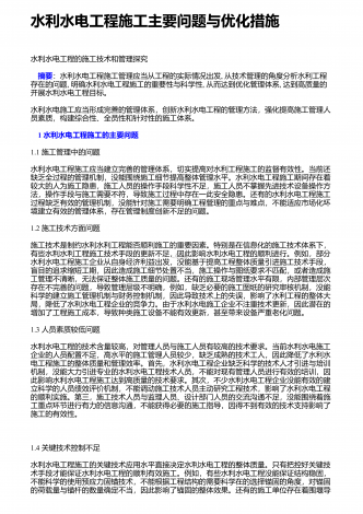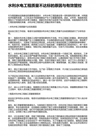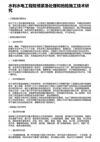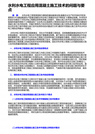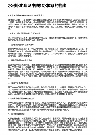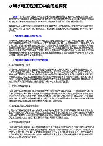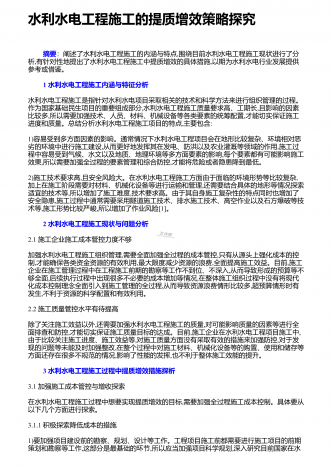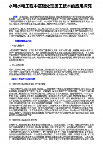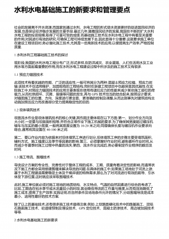 水利水电基础施工的新要求和管理要点社会的发展离不开水资源,而国家则通过水利、水电工程的形式使水资源更好的促进国民经济的发展,也是保证经济稳步发展的主要手段.最近几年,随着国民经济的发展,我国在不断的扩大水利水电工程的投资规模,取得了可喜可贺的成绩.而基础施工技术在水利水电工程中有着至关重要的作用,对其进行有效的研究,可确保工程可持续发展下去,因此显得十分重要.这就要求施工单位在建设工程项目时,务必强化施工技术,尤其是一些高新技术的应用,以便提高生产效率,严格控制质量.1水利水利工程基础施工技术的...