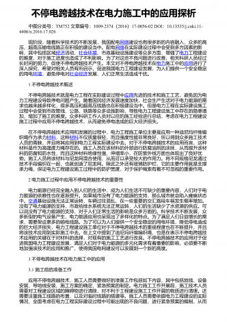 不停电跨越技术在电力施工中的应用探析 中图分类号:TM752 文章编号:1009-2374(2016)17-0056-02 DOI:10.13535/j.cnki.11-4406/n.2016.17.026 现阶段,随着科学技术的不断发展,我国配电网络建设也有很多新的内容融入,众多的高压、超高压输电线路正在积极的建设当中。配电网络在实际建设过程中会受到多方因素的影响,其中包括区域经济活动、社会 环境 、市政基础设施建设等众多方面,增强了电力工程建设的难度,对于施工进度也造成了不利影响。为...