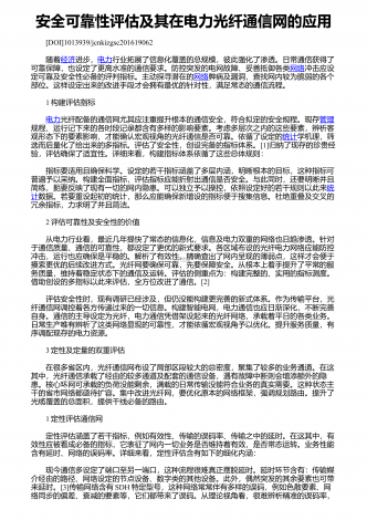 安全可靠性评估及其在电力光纤通信网的应用 [DOI]1013939/jcnkizgsc201619062 随着经济进步,电力行业拓展了信息化覆盖的总规模,彼此强化了渗透。日常通信获得了可靠保障,也设定了更高水准的通信要求。防控突发的电网故障、妥善抵御各类网络冲击应设定可靠及安全性必备的评判指标。主动探寻潜在的网络弊病及漏洞,查找网内较为脆弱的各个部位。这样设定出来的改进手段才会拥有最优的针对性,满足常态的通信流程。 1构建评估指标 电力光纤配备的通信网尤其应注重提升根本的通信安全,符合拟...