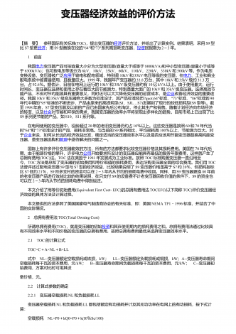变压器经济效益的评价方法 【摘要】参照国际有关标准(TOC),提出变压器的经济评价方法,并给出了计算实例。结果表明,采用S9型比S7型更经济;用S9型替换在役的"64"和"73"系列高损耗变压器,投资回报期为2~3年。 1 前言 我国电力变压器产品可按容量大小分为大型变压器(容量大于或等于8000kVA)和中小型变压器(容量小于或等于6300kVA);也可按电压等级分为6kV、10kV、35kV、60kV、110kV、220kV、330kV和500kV等。作为电压变换设备,变压器被广泛应用...