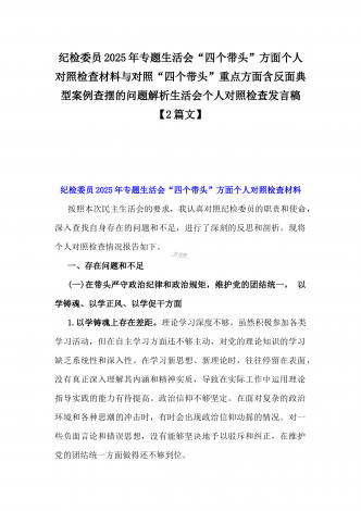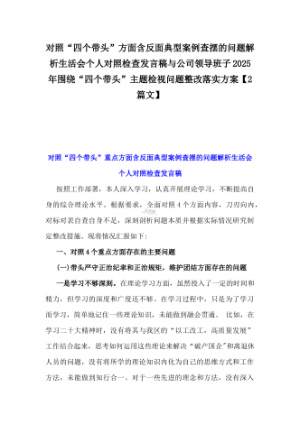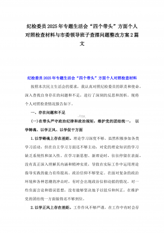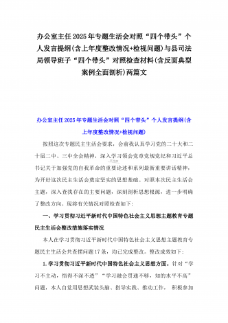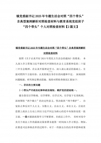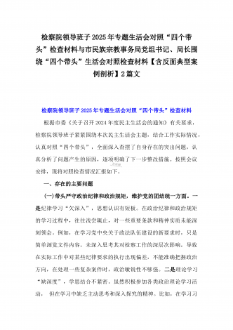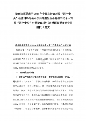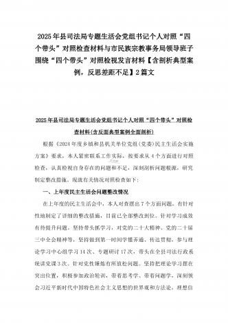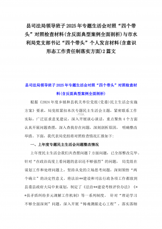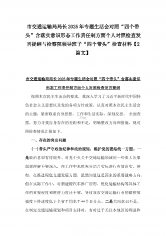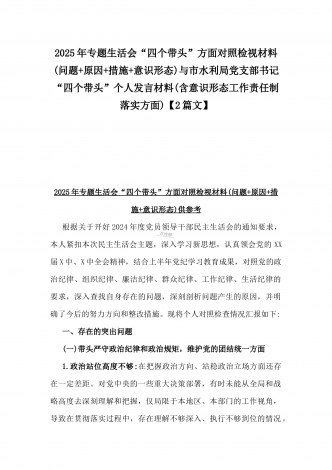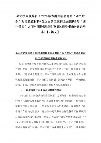 2025年专题生活会“四个带头”方面对照检视材料(问题+原因+措施+意识形态)与市财政局党组书记、局长对照“四个带头”对照检视发言材料(含以案为鉴、以案促改促治方面)2篇文