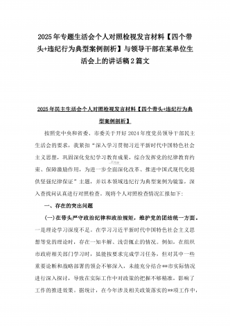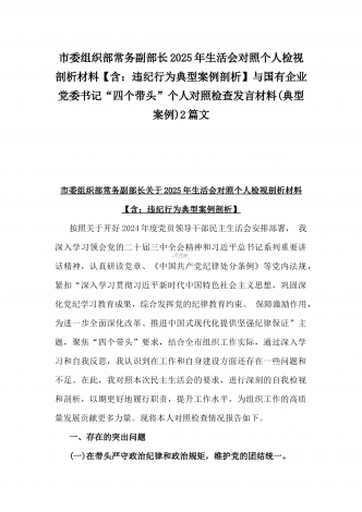 2025年市委组织部长、镇长、乡镇党委书记、组织委员、市委组织部分管、市委社会工作部、市委组织部、市委组织部常务副部长专题生活会“四个带头”对照个人检查材料8篇word文(含:违纪行为典型案例解析)