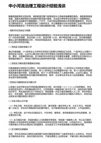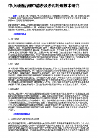 中小河道治理中清淤及淤泥处理技术研究 摘要:随着工业生产的发展,中小河道都存在不同程度的污染状况。基于此,文章结合自身工作经验,对当下河道治理中的清淤技术进行了阐述,并重点探讨了河道淤泥处理技术,以期为我国中小河道的清淤提供参考。新时代背景下,随着人们对环境质量要求的提升,各类治理河道污染的技术得到应用,而对河道清淤技术的研究一直是重中之重。对河道进行清淤不仅有利于保持河道通畅,还有助于提升河道的防洪和灌溉能力,因此,对河道清淤技术的研究具有重要的实用意义。 1 河道清淤技术1.1排干清淤排...