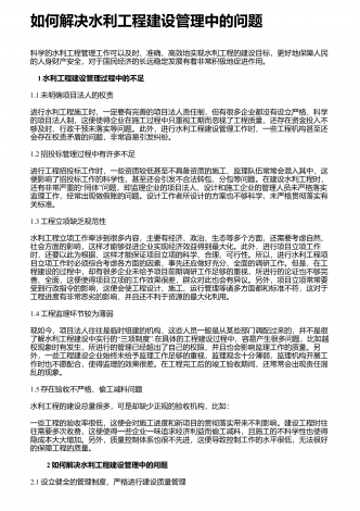 农村水利工程施工管理的特点、现状及发展对策