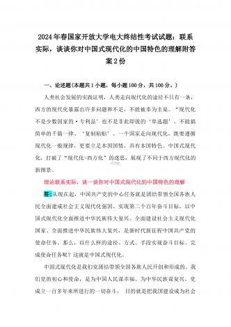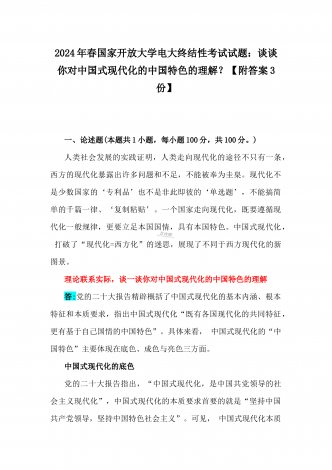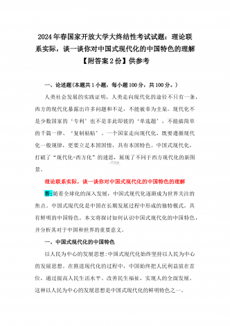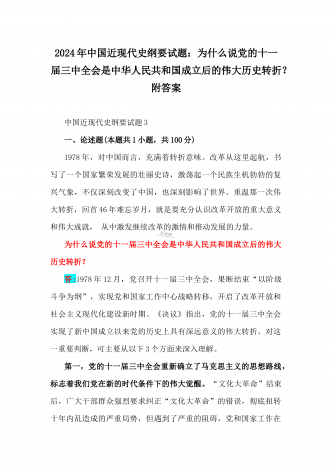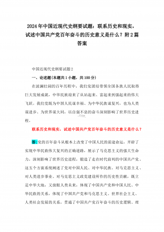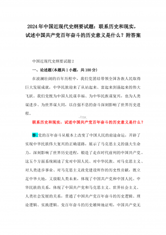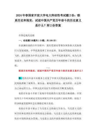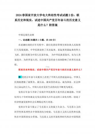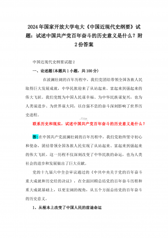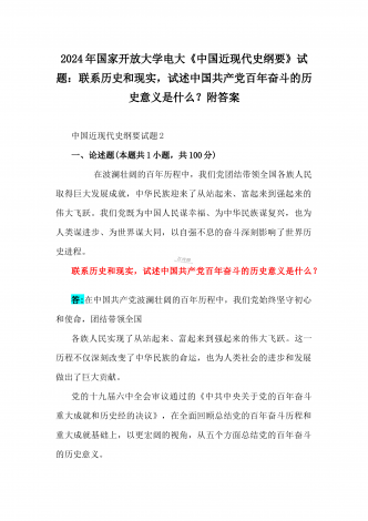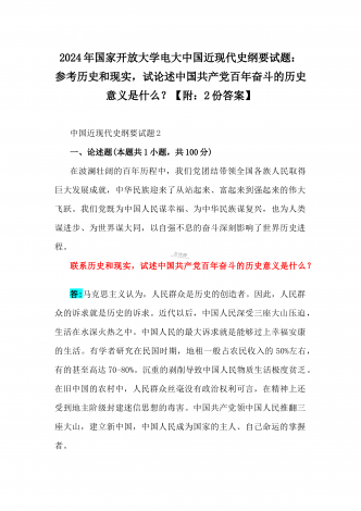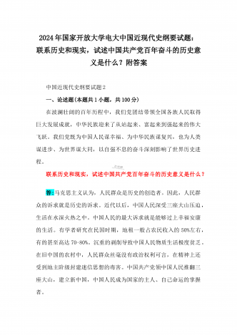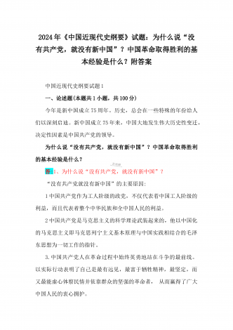 2024年国家开放大学电大《中国近现代史纲要》试题:为什么说“没有共产党,就没有新中国”?中国革命取得胜利的基本经验是什么?附答案中国近现代史纲要试题1一、论述题(本题共1小题,共100分)今年是新中国成立75周年。历史,总会在一些特殊的年份给人们以深刻启迪。新中国成立75年来,中国大地发生伟大历史性变迁,决定性因素是中国共产党的领导。为什么说“没有共产党,就没有新中国”?中国革命取得胜利的基本经验是什么?答:一、“没有共产党,就没有新中国”是中国人民基于自己的切身体验而确认的客观真理中国共产党...
