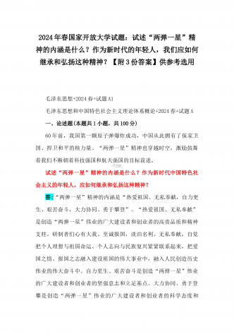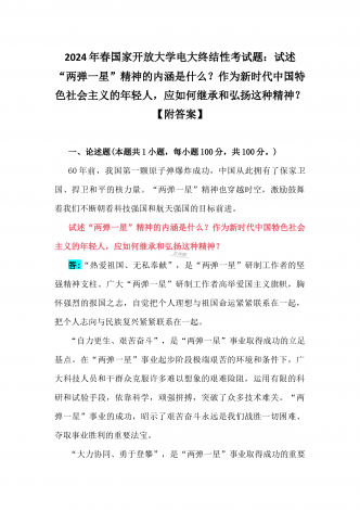 2024年春国家开放大学电大终结性考试题:试述“两弹一星”精神的内涵是什么?作为新时代中国特色社会主义的年轻人,应如何继承和弘扬这种精神?【附答案】