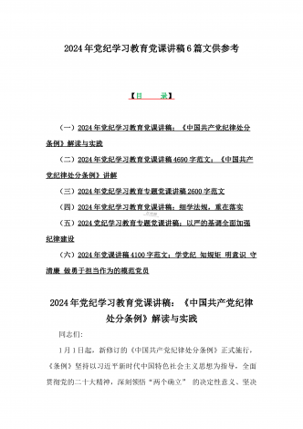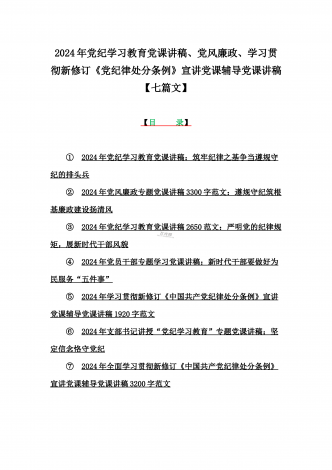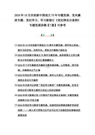 2024年10月庆祝新中国成立75年专题党课、党风廉政专题、党纪学习、学习新修订《党纪律处分条例》专题党课讲稿【7篇】可参考