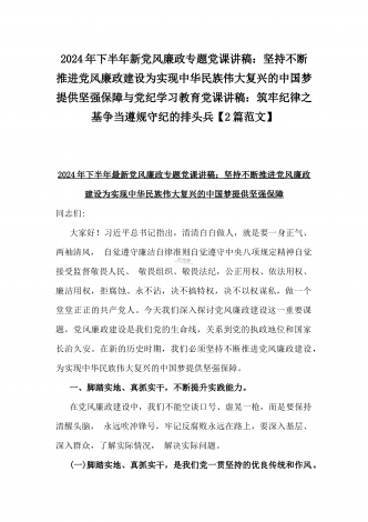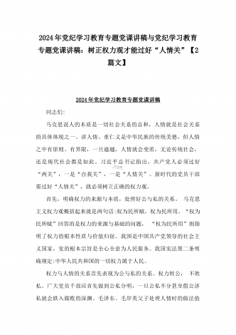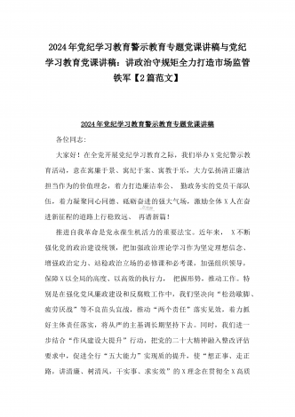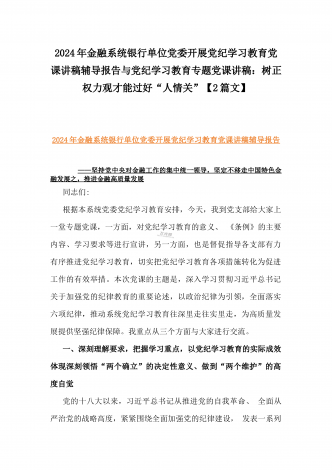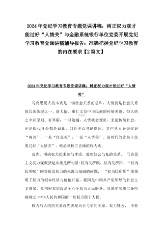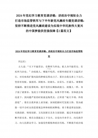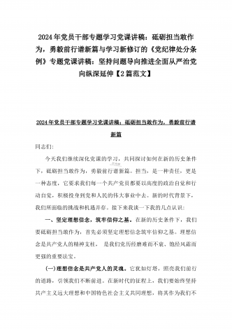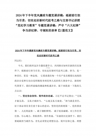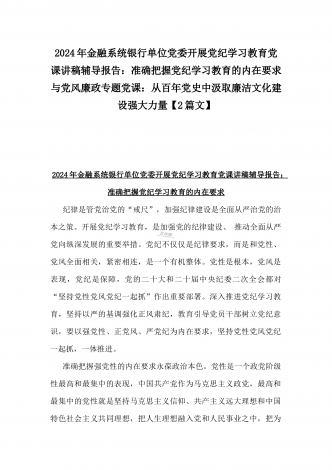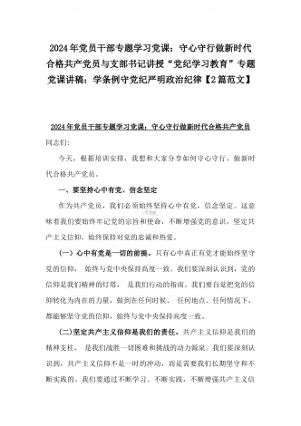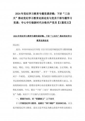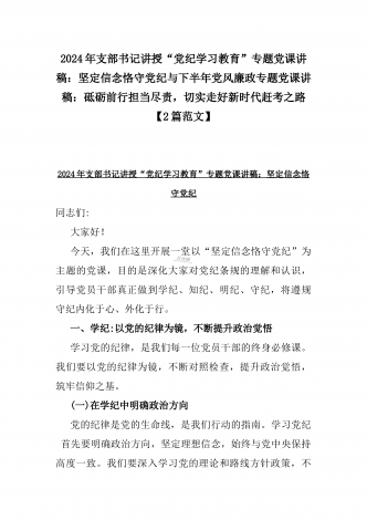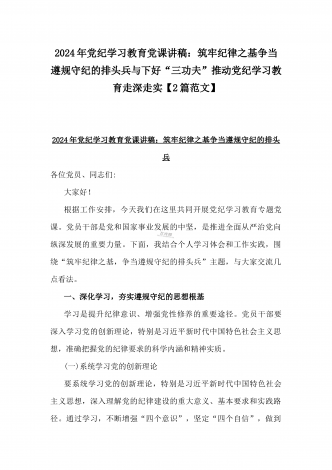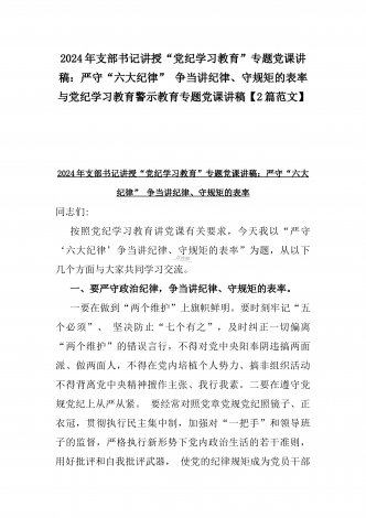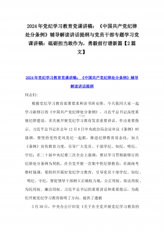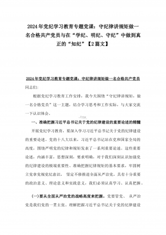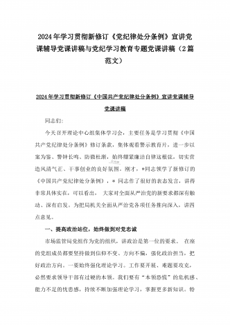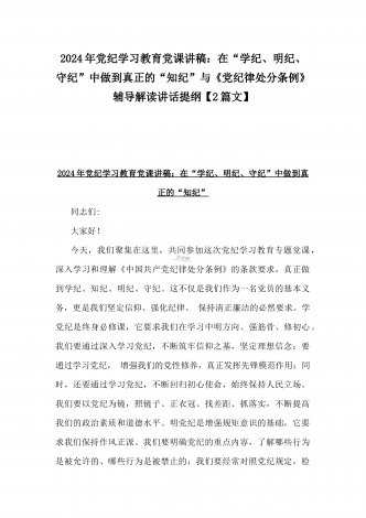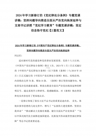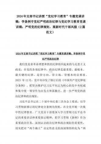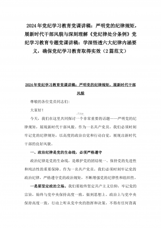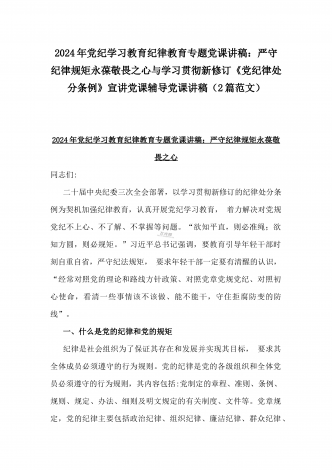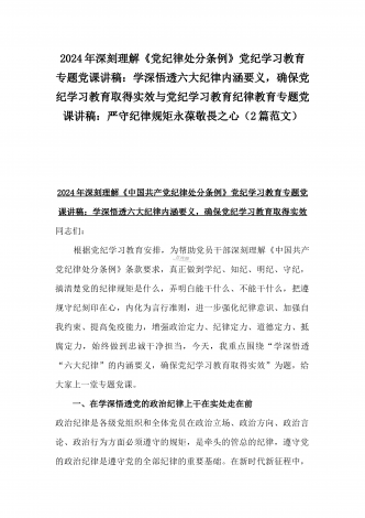 2024年深刻理解《党纪律处分条例》党纪学习教育专题党课讲稿:学深悟透六大纪律内涵要义,确保党纪学习教育取得实效与党纪学习教育纪律教育专题党课讲稿:严守纪律规矩永葆敬畏之心(2篇范文)