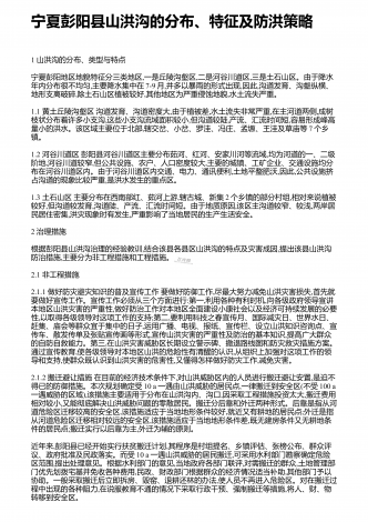 宁夏彭阳县山洪沟的分布、特征及防洪策略
