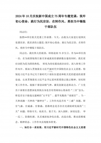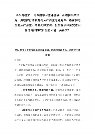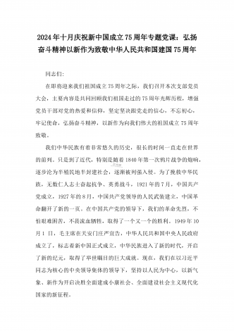 2024年从严治党专题党课:纵深推进全面从严治党,增强纪律意识、担当意识和奋发意识,营造良好的政治生态环境与2024年庆新中国成立75年专题党课:弘扬奋斗精神以新作为致敬中华人民共和国建国75年(两篇文)