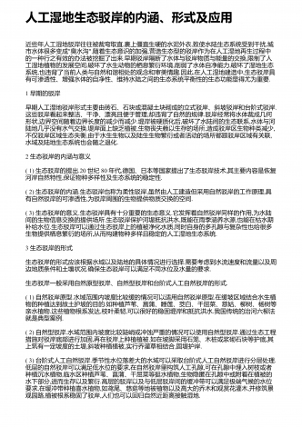 人工湿地生态驳岸的内涵、形式及应用近些年人工湿地驳岸往往被裁弯取直,裹上僵直生硬的水泥外衣,致使水陆生态系统受到干扰,城市水体很多变成"臭水沟".随着生态意识的加强,营造生态型的驳岸作为在人工湿地再生过程中的一种行之有效的办法被挖掘了出来.早期驳岸隔断了水体与驳岸物质与能量的交换,限制了人工湿地植物的发展空间,破坏了水生动物的栖息繁衍环境,削弱了水体自净能力,破坏了湿地生态系统,也违背了当前人类与自然和谐相处的观念和审美情趣.因此,在人工湿地建造中,生态驳岸具有可渗透性、增强水体的自净性、维持水...