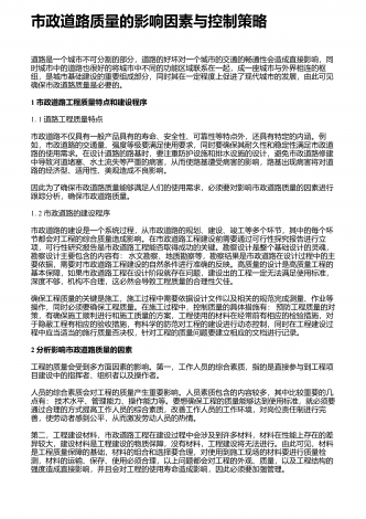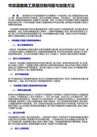 市政道路施工质量的影响原因及管理措施 摘要:当前,我国社会经济得到了不断地进步与发展,同样也推动了我国各城市的基础设施建设,市政道路工程建设数量正在不断增加。工程施工期间的监理控制工作具有不可忽视的作用,是确保市政道路施工质量、日后使用安全的重要依据。因此,对市政道路施工监理控制的措施展开研究,是当前基础设施建设中迫在眉睫需要处理的问题。 市政道路的建设,主要是为了加快城市建设的进程,为市民提供更加便利的服务。但是,就目前市政道路工程的建设现状而言,依然存在一定的不足,对施工的质量产生巨大的影...