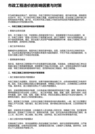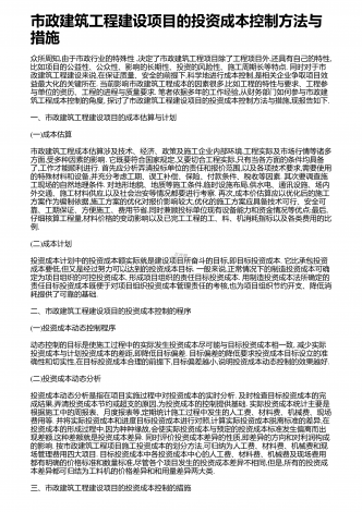 市政建筑工程建设项目的投资成本控制方法与措施众所周知,由于市政行业的特殊性,决定了市政建筑工程项目除了工程项目外,还具有自己的特性,比如项目的公益性、公众性、影响的长期性、投资的风险性、施工周期长等特点.同时对于市政建筑工程建设来说,在保证质量、安全的前提下,科学地进行成本控制,是相关企业争取项目效益最大化的关键所在.当前影响市政建筑工程成本的因素很多,比如工程的特性与要求、工程参与单位的资历、工程的进程与质量要求.笔者依据多年的工作经验,从财务部门如何参与市政建筑工程成本控制的角度,探讨了市政...