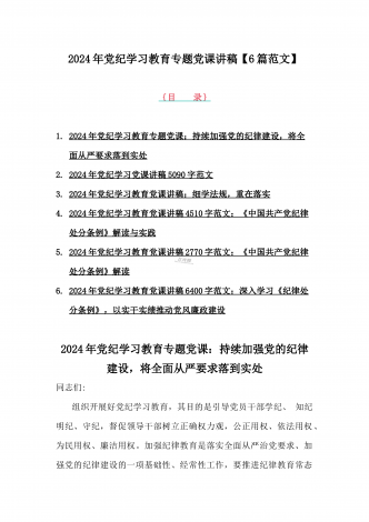 2024年基层党组织书记讲纪律党课《党纪学习教育党课》讲稿、学习贯彻新修订《中国共产党纪律处分条例》宣讲党课辅导党课讲稿【6篇】供参考