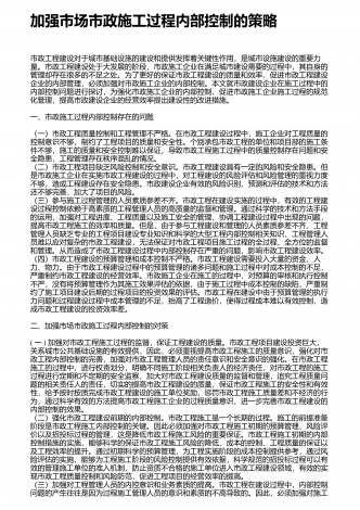 计算机技术融入施工管理控制的思考 在经济不断地高速发展的同时,城市建设也在紧跟时代的步伐向前发展,只有这样才会更加的符合如今都市的标准.在我们的市政工作变得越来越多样化,目的是更好的服务于我们这个社会.近几年来,计算机技术在我们的市政施工管理工作中被广泛的运用,并且取得了很好的收益.计算机系统最为明显的处理数据快,容载能力强,传递信息的速度比较快,这些优越的方面近几年在市政管理方面都有很好的体现.信息技术融入到各行各业是未来发展的大的趋势.1 对于施工的管理以及计算机的应用目前在市政工程的...