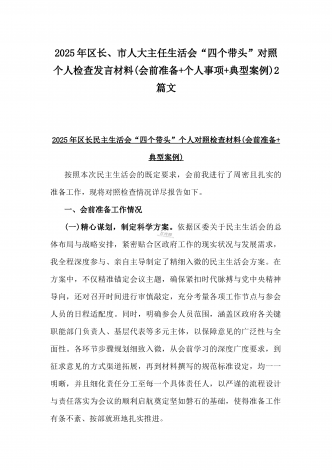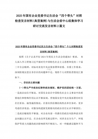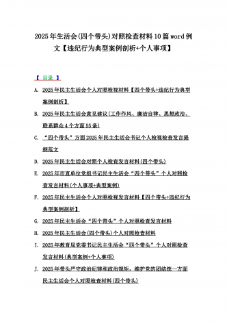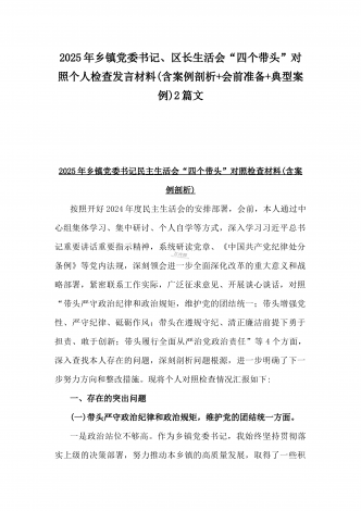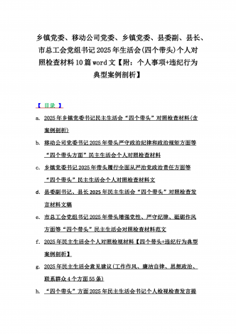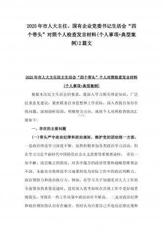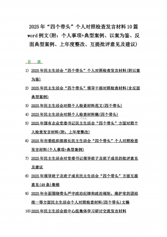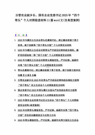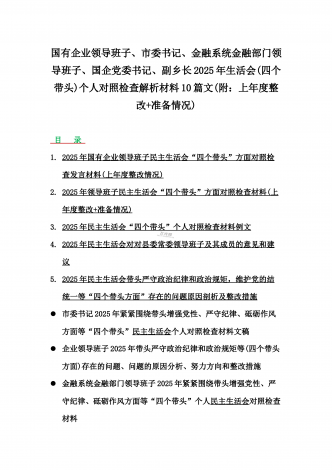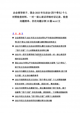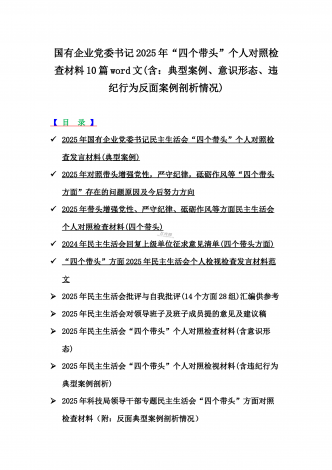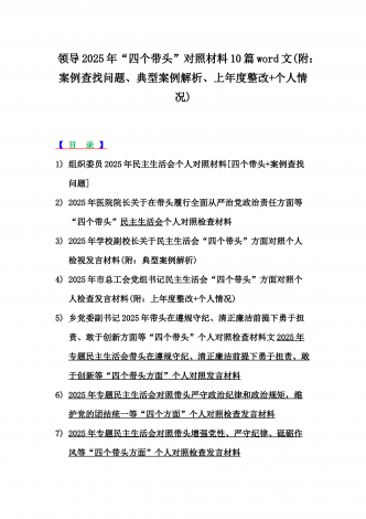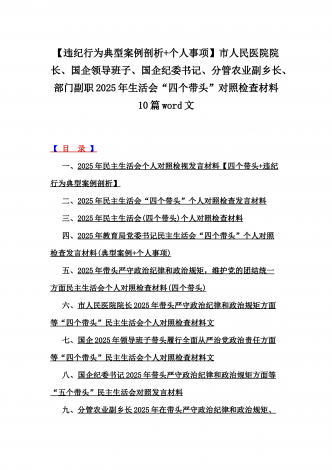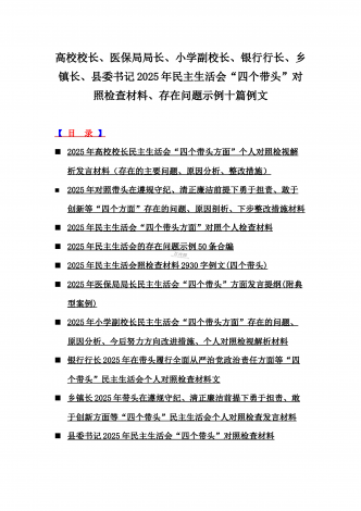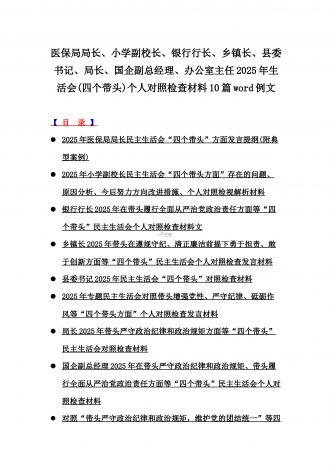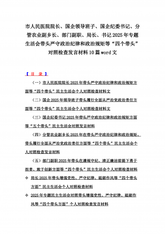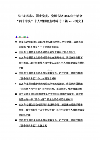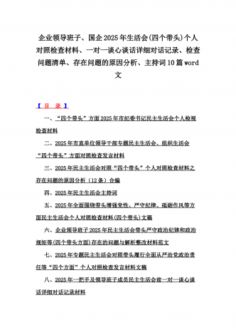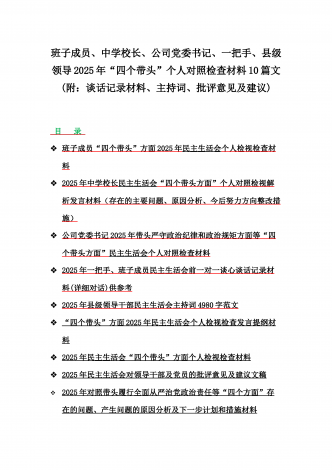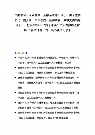 企业领导、市中医院、县委常委、乡镇党委领导班子、一把手、班子成员、中学校长、公司党委书记、县级领导2025年“四个带头”个人对照检查材料10篇word文(附:谈话记录材料、主持词)